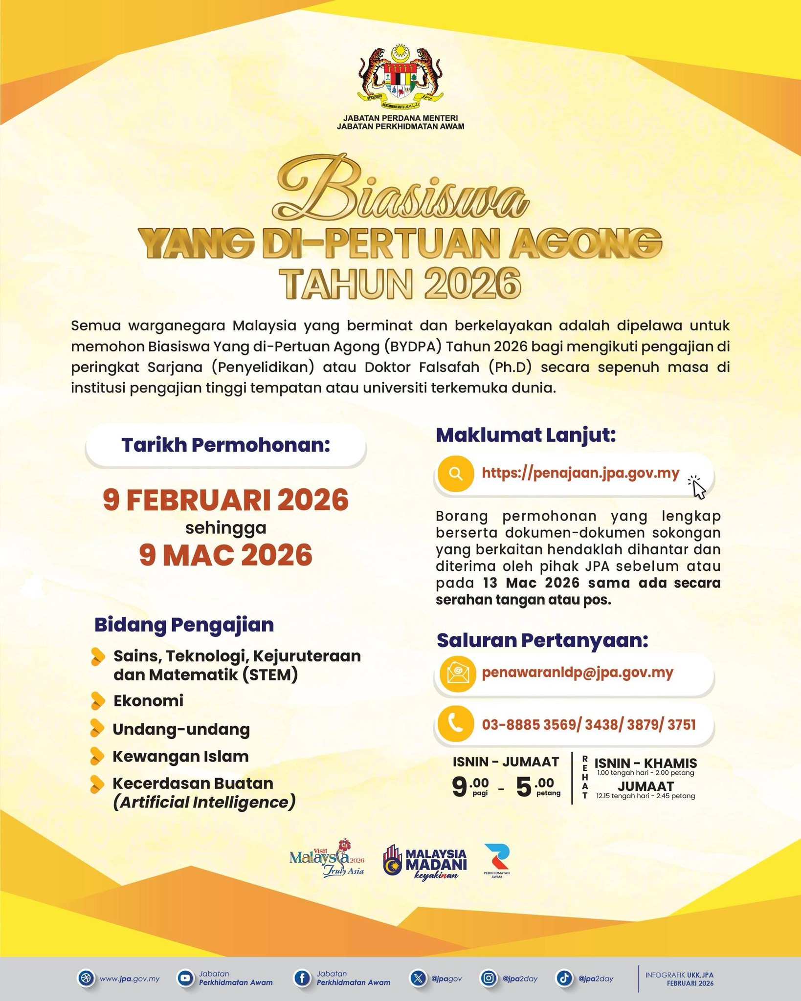 BIASISWA YANG DI-PERTUAN AGONG (BYDPA) 2026 – JPA